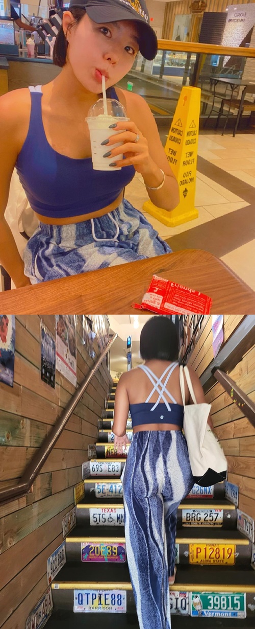 青のブラトップを着用したイ・サンファは小麦色の美肌をカメラに披露。現役引退後も変わらない引き締まったスタイルとともに、健康的な姿をファンに見せた。