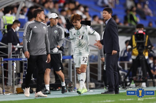 結局、キム・ジンスは右太ももの裏を気にした様子のまま、グラウンドを後にすることになった。なお、試合は全北現代が2-1で勝利し、決勝進出を決めている。