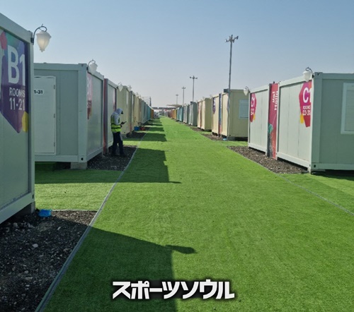 ドーハ市内から車で約40分ほど走るとコンテナが目についた。ハマド国際空港から近かったが、「はたしてここに宿舎があるのか?」という気がした。それだけ人通りの少ないところだった。
