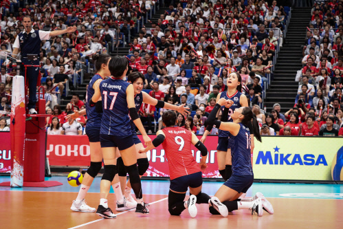 ステファーノ・ラバリニ監督率いる女子バレーボール韓国代表は9月16日、日本の横浜アリーナで開かれた2019国際バレーボール連盟(FIVB)女子W杯・第3戦で日本と対戦し、セットカウント3-1(23-25、25-19、25-22、27-25)で勝利した。