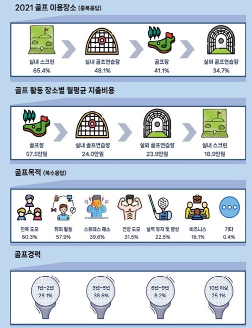 特に室内スクリーンゴルフは2007年以降持続的な増加傾向を見せた反面、ゴルフ場(フィールド)は2017年に比べて4.8%減少の13.1%と調査された。