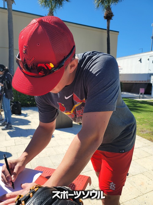 韓国ファンに対する感謝の気持ちも示した。現在進行形で韓国語の勉強をしているとのことだ。お世辞ではなかった。実際にA4用紙にハングルで「ヒョンス、ファイティン!」と書いた。