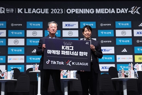 両社の協約式は2月20日、「HANA 1Q Kリーグ 2023開幕メディアデー」が開催されたThe-Kホテルで、連盟のチョ・ヨンサン事務総長とTikTok北東アジア運営マーケティング部門の佐藤陽一社長が参加したなかで行われた。