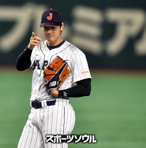 韓日戦の3回裏、無死2、3塁。大谷は申告敬遠を得た。バットボーイにバットを渡した後、脛と肘のプロテクターを外し、手袋を外して渡しながらそっと抱擁するジェスチャーを取った。若干の微笑みも浮かんでいる。自分の道具を受け取りに来た少年に、感謝の気持ちを表したものと映った。
