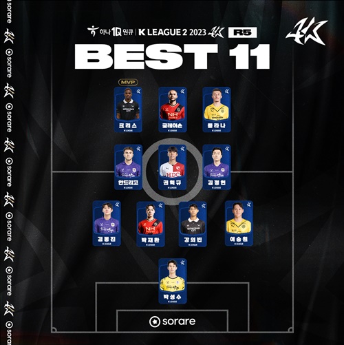Kリーグを管轄する韓国プロサッカー連盟は、4月1~2日に行われたKリーグ1(1部)、Kリーグ2(2部)第5節のMVP、ベストイレブン、ベストチーム、ベストマッチを発表した。