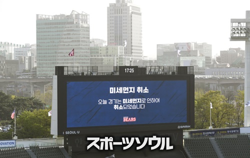 PM2.5によって試合が中止となったのは今季初めてで、歴代16回目となる。2021年5月8日、光州(クァンジュ)KIAチャンピオンズフィールドで開催予定だった斗山対KIAタイガース以来、約1年11カ月ぶりのことだ。