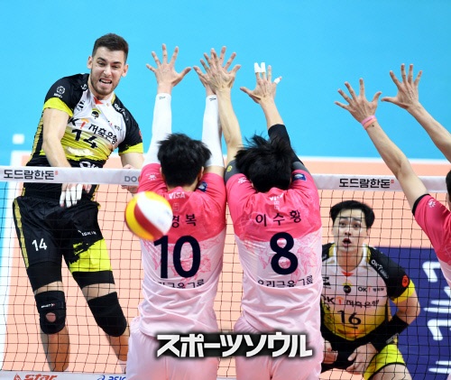 OK貯蓄銀行もソン・ミョングンとレオのプレーがさえわたり、1度もフルセットまでもつれこまない全勝を挙げる快挙を達成した。
