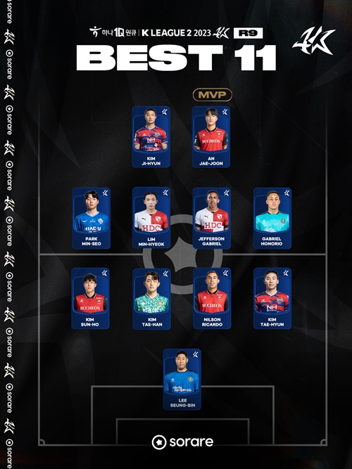 (画像提供=韓国プロサッカー連盟)Kリーグ2第9節ベストイレブン