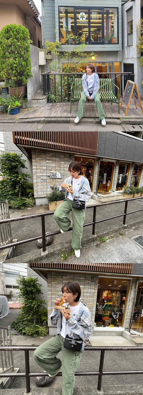 投稿された写真には、とある街中のベンチでくつろぐ様子のイ・ボミが写っている。春らしい色合いのラフなコーディネートで、軽食を頬張る姿なども写し出されていた。