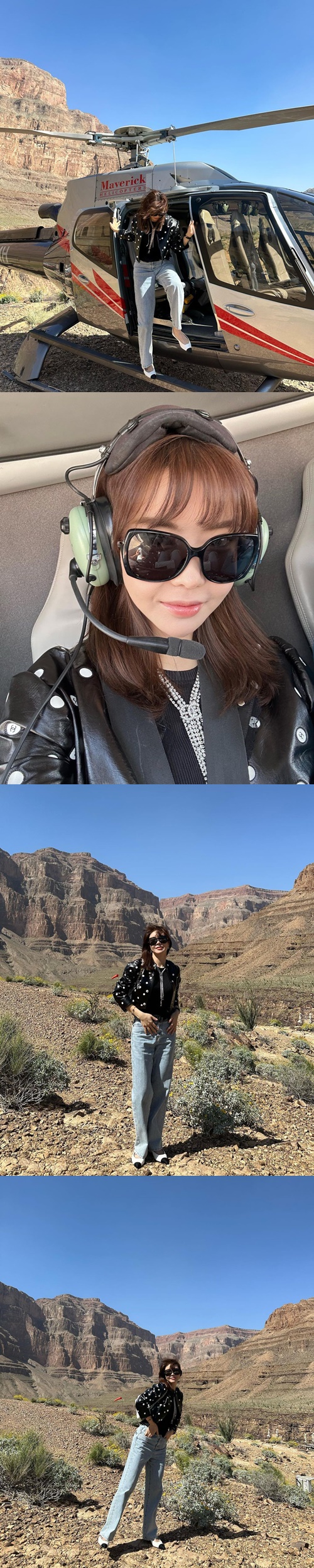 写真を見ると、米アリゾナ州にあるグランドキャニオンのとある一角で、ヘリコプターから降り立とうとしているアン・シネの姿が写っている。風の影響で長い髪がボサボサになってはいるが、降り立つ姿だけでも優雅な雰囲気が感じられる。
