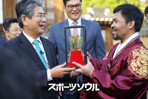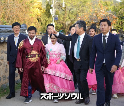 ボクシング界の“生きる伝説”マニー・パッキャオの非常に珍しい姿が公開された。韓国の民族衣装を着た姿だ。