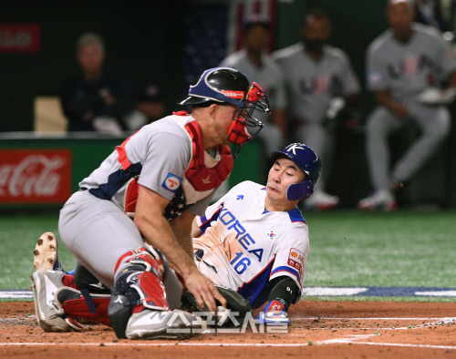 3回裏には疑惑の判定もあった。1死、レフト前ヒットで出塁したキム・ハソンが、イ・ジョンフの2塁打でホームに滑り込んだ。アメリカ捕手クラッツのブロックを避けてホームプレートにタッチしたが、判定はアウト。韓国ベンチがビデオ判定を要請し、セーフにも見えたが、審判は判定を変えなかった。