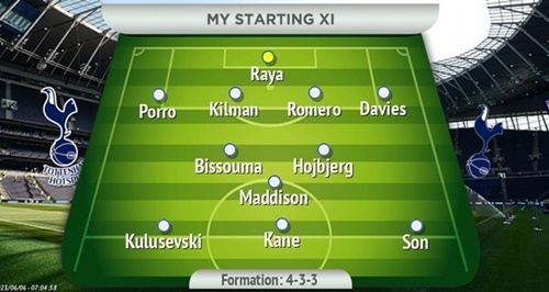 攻撃陣では、ケイン、ソン・フンミン(30)、デヤン・クルゼフスキ(23)の既存戦力が名を連ねた。中盤にはピエール・エミール・ホイビェルク(27)とイヴ・ビスマ(26)が底を務め、中央にはジェイムズ・マディソン(26、レスターシティ)が選ばれた。