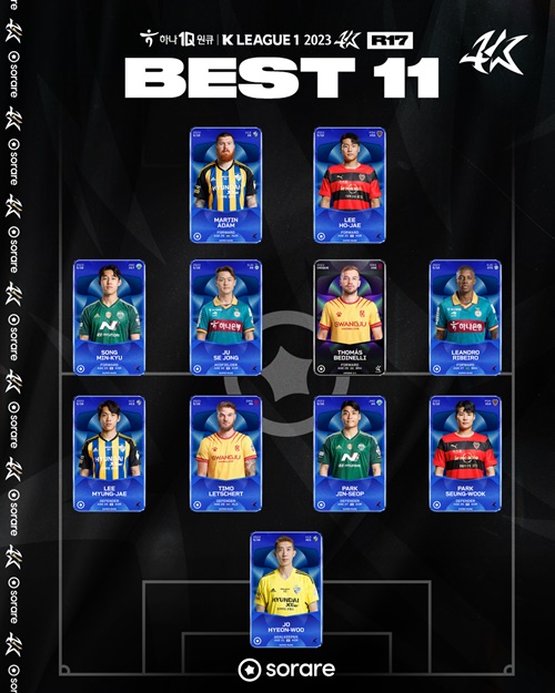 Kリーグ1第17節ベストイレブンは以下の通り。