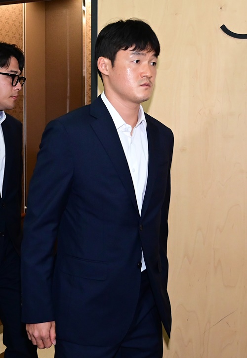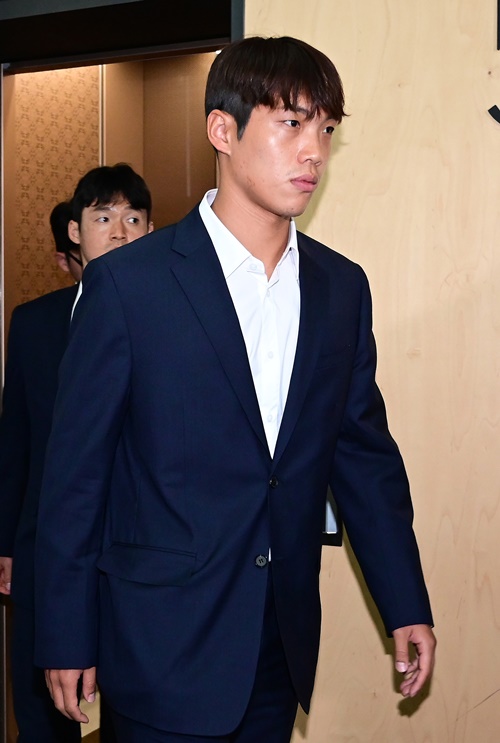 蔚山の選手たちは22日14時頃、賞罰委員会に出席するためサッカー会館に入った。彼らは皆紺色のスーツを着用し、頭を下げたまま会議室に入っていった。