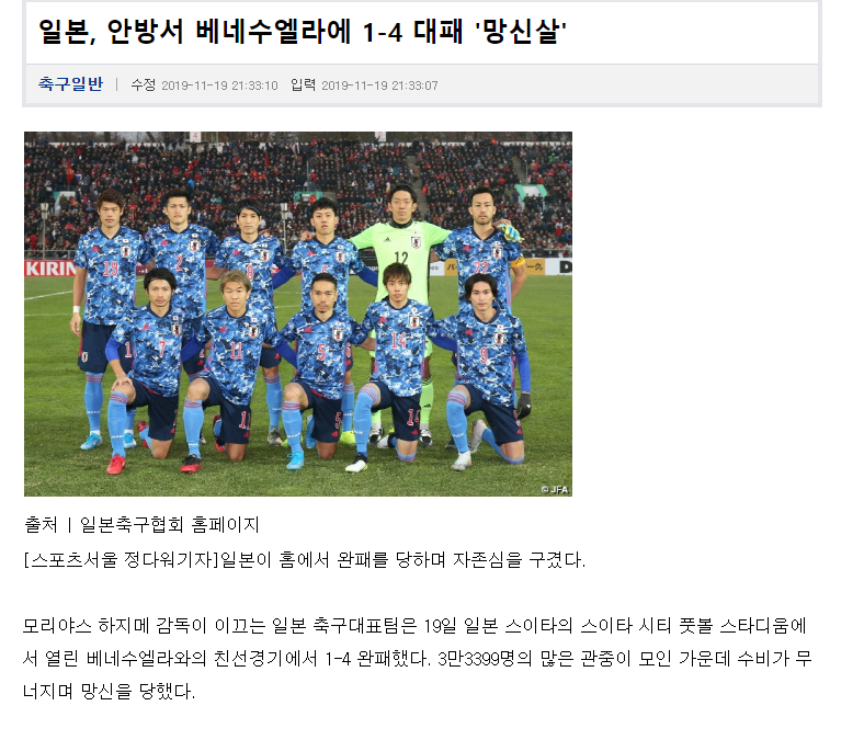 日本がホームで完敗したこの試合を、本紙『スポーツソウル』チョン・ダウォ記者は「プライドに傷がついた」という書き出しで報じた。