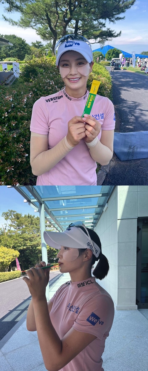 写真を見ると、ゴルフウェア姿で顔にUVカットのパッチを貼り、カメラに笑顔を見せるパク・キョルが写っている。