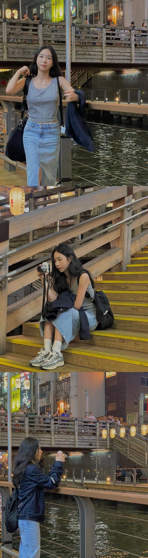 写真を見ると、日本の大阪を観光するチェ・ダビンの姿が写っている。