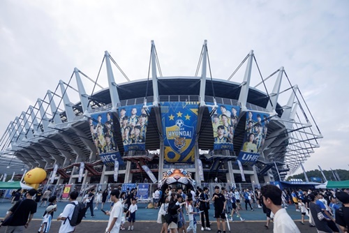 蔚山は19日、ホームの蔚山文殊(ウルサン・ムンス)サッカー競技場で行われた全北現代(チョンブク・ヒョンデ)モータースとのKリーグ1(1部)第27節の試合中、主審がVARオンフィールドレビューをする状況で、該当判定の対象となった試合場面のリプレイを大型ビジョンに表示した。