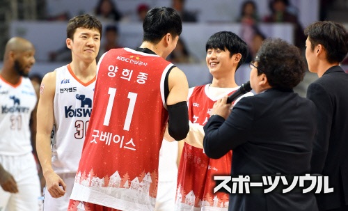 チョン・ヘインは、仁川電子ランドエレファンツのパク・チャンヒと安養KGCのチャン・ヒジョンからボールを受け取り、ドライブインからのレイアップシュートを見事に成功させ、ファンから温かい拍手を受けた。