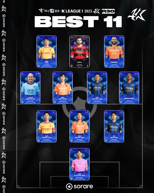 MF:バルセロス(大邱FC)、ソ・ミヌ(江原FC)、イ・ミョンジュ(仁川ユナイテッド)、エルナンデス(仁川ユナイテッド)