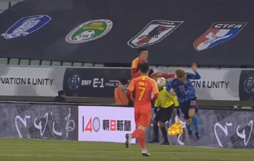 さらに中国DFジャン・ジペンは前半30分頃、日本の橋岡大樹の後頭部に向かってキックをした。試合後、彼は「意図的なファウルではなかった。僕たちは暴力的なサッカーを抑制している」と否認したが、誰が見ても意図的な行動だった。