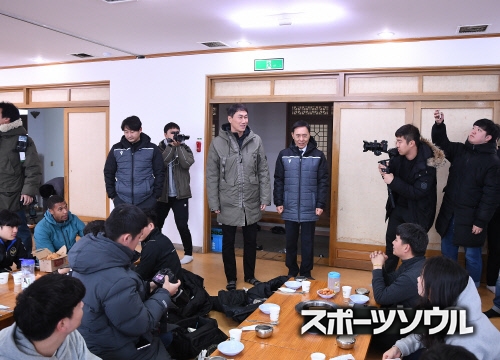 この席には1月2日付で治療に専念するために辞意を表明したユ・サンチョル前監督の空席が大きく見えた。イ・チョンス戦力強化室長が中心となって、イム・ジュンヨン首席コーチをはじめコーチ陣と選手団を率いたが、船長がいないため、選手団の顔色は明るくなかった。