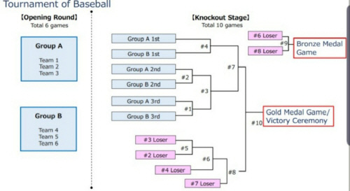 ちなみに初めて野球種目が採用された2008年北京五輪では、8カ国が1回戦総当たりの予選リーグを行い、上位4チームによる決勝トーナメントが行われた。
