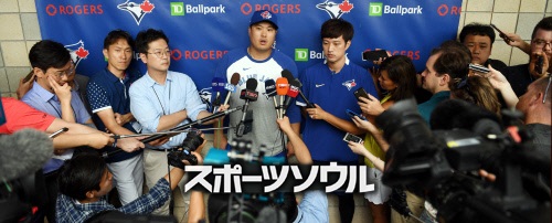 選手たちも同じだ。ブルージェイズの看板打者ブラディミール・ゲレーロ・ジュニアは、個人練習を終えて引き上げる際、不思議そうな表情でリュ・ヒョンジンのインタビュー現場を見守った。