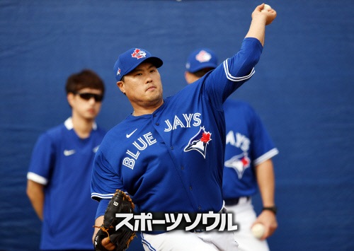 リュ・ヒョンジンは2月14日(日本時間)、米フロリダ州ダンイーデンでトロント・ブルージェイズ移籍後、初の公式トレーニングを行った。