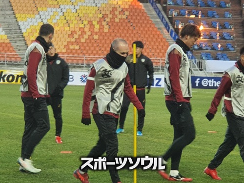 試合前日である2月18日、イニエスタを含むヴィッセル神戸の選手たちは、トレーニングのためにビッグバード(水原ワールドカップ競技場の愛称)に姿を現した。