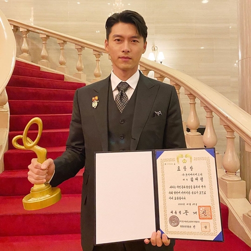 ヒョンビンの所属事務所VASTエンターテインメントは10月28日夜、公式インスタグラムにヒョンビンの近況写真を掲載。「存在だけでも光輝く俳優ヒョンビンが、2020大衆文化芸術賞で大統領表彰を授賞しました。いつも応援してくださり、愛してくださるたくさんの方々に今一度感謝します」と投稿した。