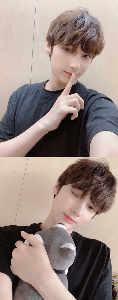 HUENINGKAIは2月23日、TXTの公式ツイッターで近況を報告。「ファファと自撮りだよ(ハスキーのぬいぐるみの名前:ファファ)」と綴り、お茶目な一面を見せた。