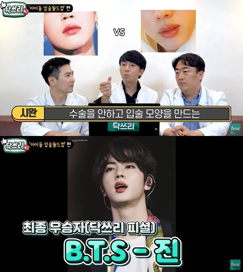3人の整形外科医はJINの写真を見て、「唇のラインがとてもはっきりしていて、適切な角度できれいに構成されている。唇の中心部分に、さりげなくボリュームがある。これがトレンドだと思う」と称賛した。