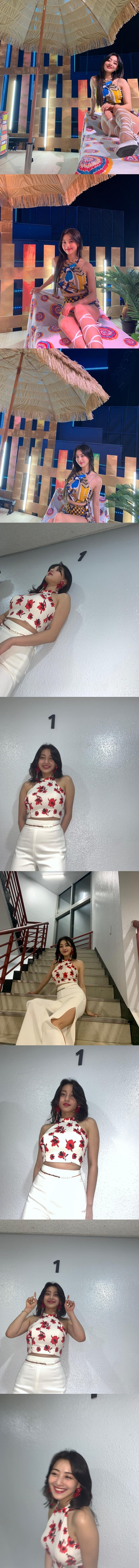 新曲『Taste of Love』の衣装を爽やかに着こなしたジヒョは、完璧なプロポーションを披露した。