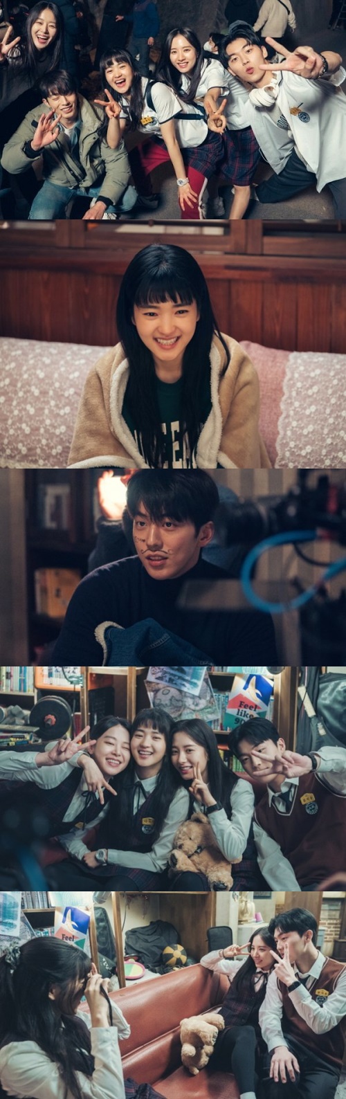 またキム・テリ、ボナ、チェ・ヒョヌク、イ・ジュミョンの同級生4人は、学生時代の思い出が詰まった“アジト”で肩を寄せ合って仲良くピースし、見る者を明るくさせた。
