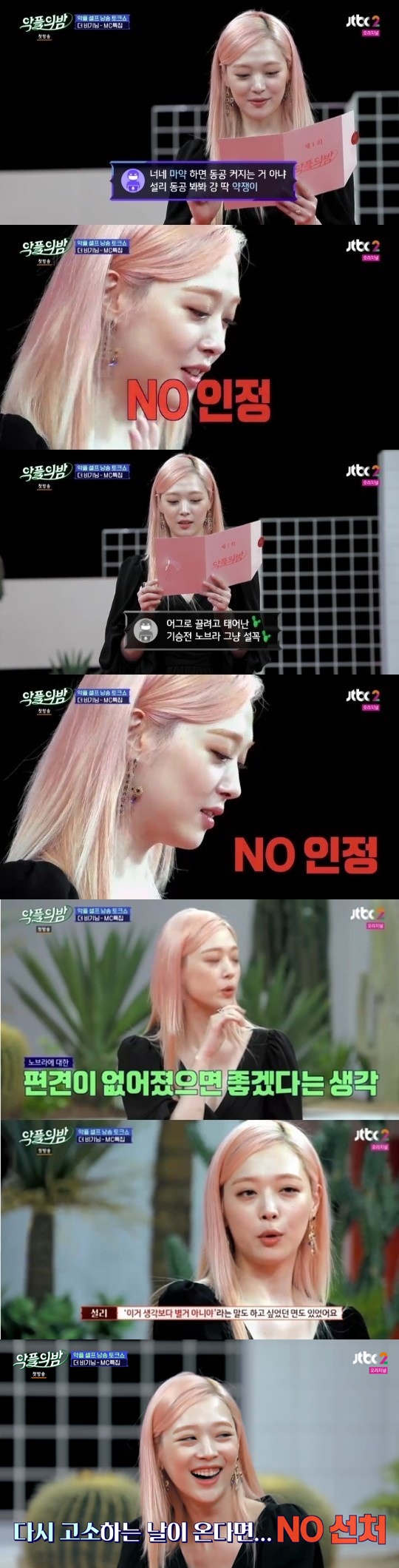 テレビ番組『悪質レスの夜』に出演した歌手ソルリが、悪質な書き込みに対する自身の考えを明らかにした。