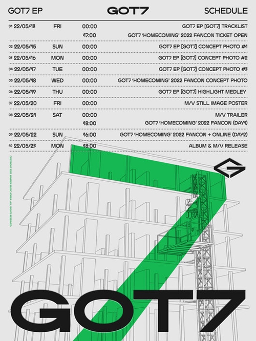 GOT7は本日(5月12日)0時、公式SNSを通じて23日にリリースを控えた新ミニアルバム『GOT7』のカムバックスケジュールイメージを公開した。