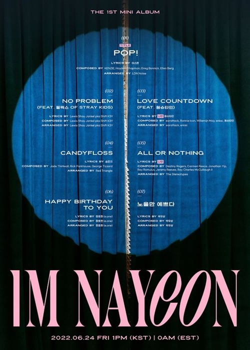 『IM NAYEON』にはリード曲の『POP!』をはじめ、『NOPROBLEM(feat.フィリックスof Stray Kids)』『LOVE COUNTDOWN(feat.ワンシュタイン)』『ALL OR NOTHING』『CANDYFLOSS』『HAPPY BIRTHDAY TO YOU』『夕焼けだけが綺麗』(原題)の計7曲が収録されている。