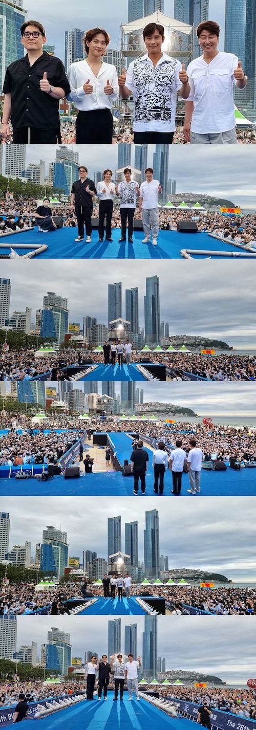 イ・ビョンホンは「ソン・ガンホさんがおっしゃったように、本当に久しぶりに海雲台の海辺でご挨拶をする。15年前の思い出が浮かんできて、とても妙な気持ちだ。僕たちが眺める、皆さんの姿と海の風景が本当に壮観だ。久しぶりに釜山に来て皆さんと一緒に時間を過ごせて本当に嬉しい」と、嬉しい気持ちを伝えた。