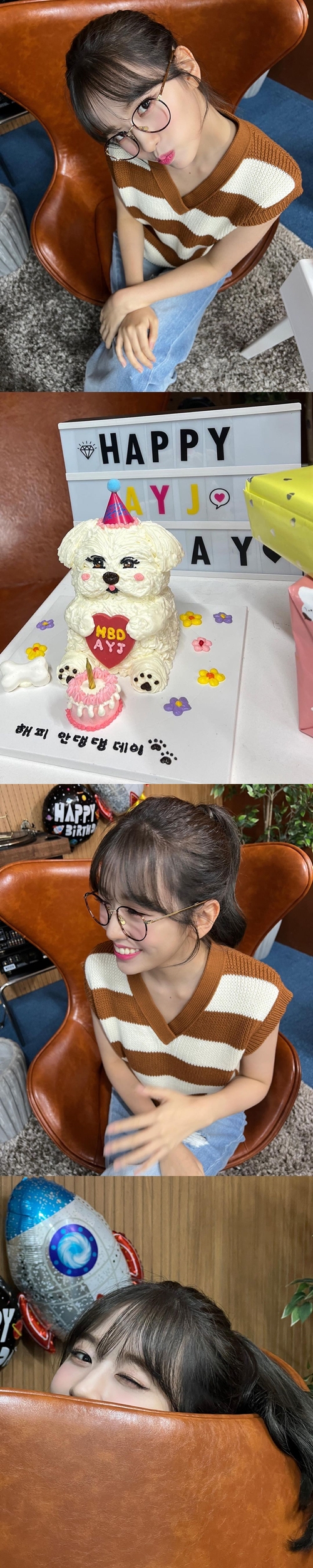 写真のユジンは、大胆なワンショルダートップスにショッキングピンクのミニスカートを合わせてフレッシュな雰囲気を醸し出したかと思えば、別の写真ではボーダー柄のベストとジーンズに丸眼鏡を合わせ、“優等生”のような格好で異なった魅力を発散した。併せて犬の形をした誕生日ケーキの写真も投稿されており、楽しい誕生日を過ごせたことがうかがえる。