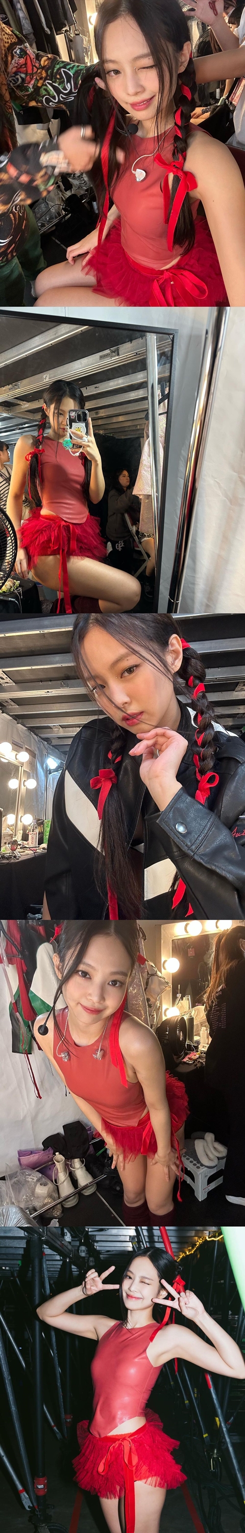 このスタイリングが気に入っている様子のジェニー。鏡を使った自撮りでは、しっかりと鍛えられた太ももが注目を集めた。また別の映像では、首をかしげるラブリーな表情でファンをときめかせている。