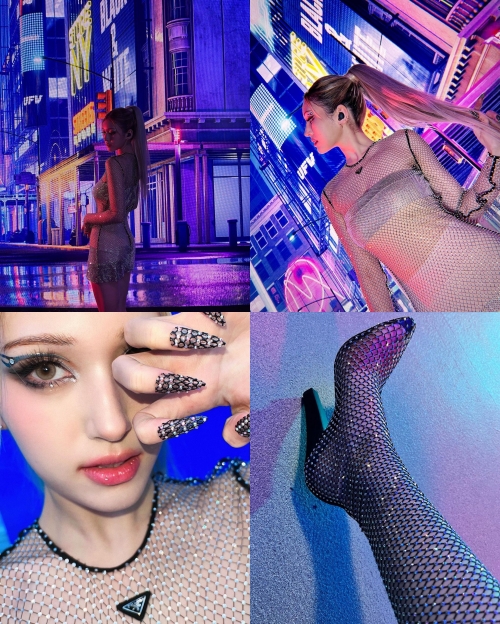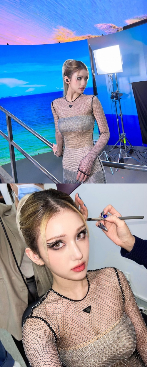 同日、チョン・ソミは自身のインスタグラムで全身や靴、顔のアップなどを公開。肩からつま先まで“全身網タイツ”姿で多くのファンを驚かせた。