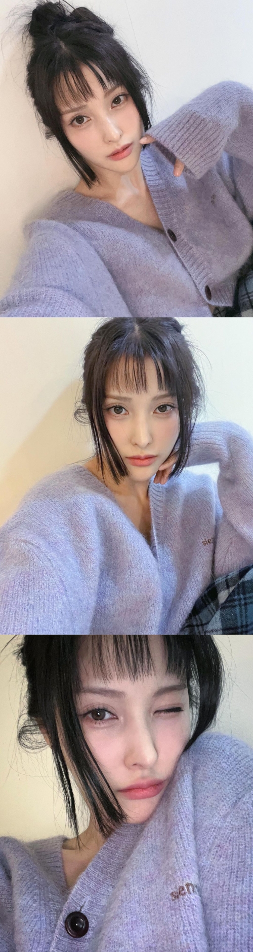 ラフなお団子ヘアでオーバーサイズのカーディガンを着用したギュリは、可憐な美貌を発揮した。まるでお人形のような端正なビジュアルで見せた上目遣いショットにファンからの反応も熱い。