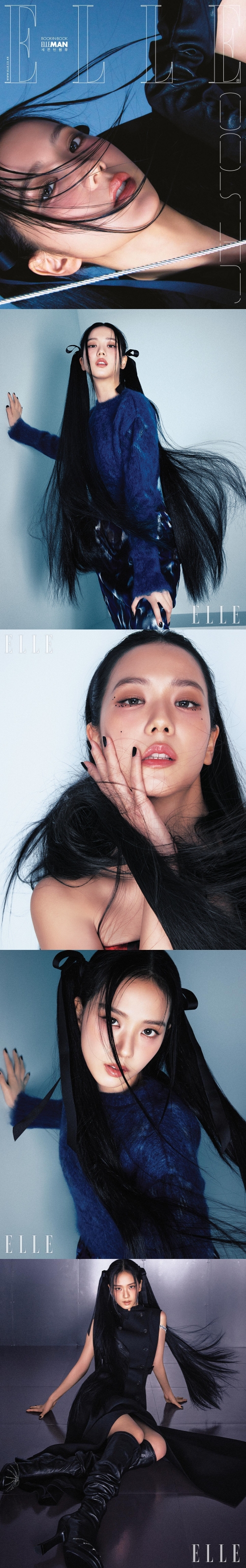 写真には、黒のセットアップにリボンでアレンジしたツインテール姿のジスが写っており、魅惑的な表情で見る者の視線を捉えている。