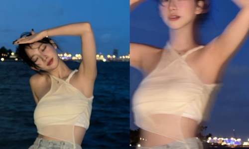 さらに、白のクロップドトップスにデニムパンツを合わせたカジュアルスタイルを披露。ピタッとしたトップスで身体のラインを強調しており、抜群のスタイルに称賛の声が寄せられた。