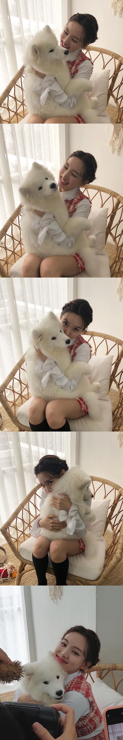 ナヨンは2月26日、TWICEの公式インスタグラムに「わんこに会いたくて載せる写真♡」と投稿。写真の中のナヨンは、白い犬を愛しそうに抱き寄せて笑顔を浮かべている。