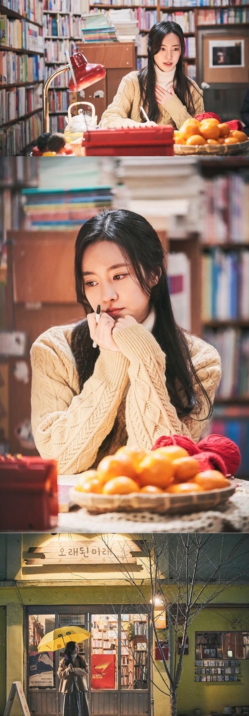写真の中のチン・セヨンは、書物で埋め尽くされた部屋で、ペンを片手にアンニュイな表情を浮かべている。黒髪のロングヘアをハーフアップスタイルと、しっとりとした雰囲気が印象的だ。
