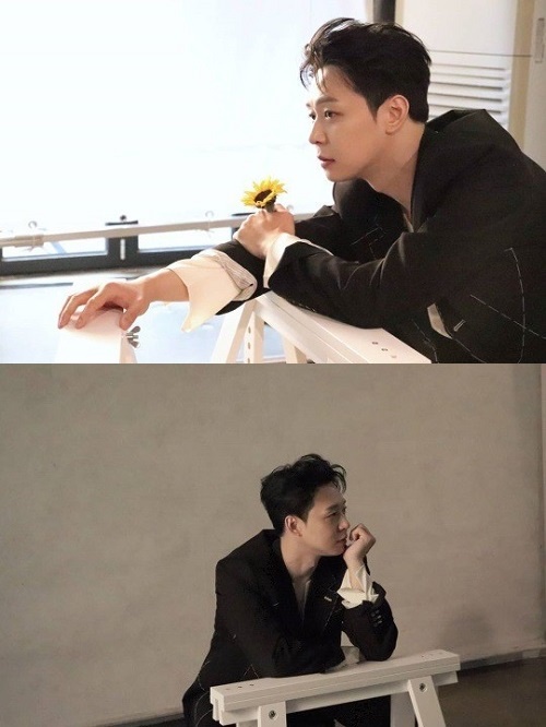 公開された写真には、スタジオで撮影中のパク・ユチョンの姿が収められていた。パク・ユチョンは片手にひまわりを持ち、微笑みを浮かべている。