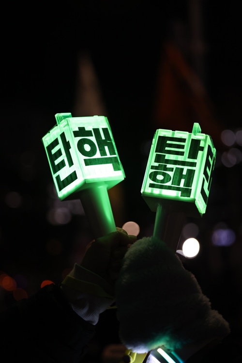 12月3日の非常戒厳令事態を受け、尹大統領の弾劾を求めるロウソク集会が連日国会前で開催されている。